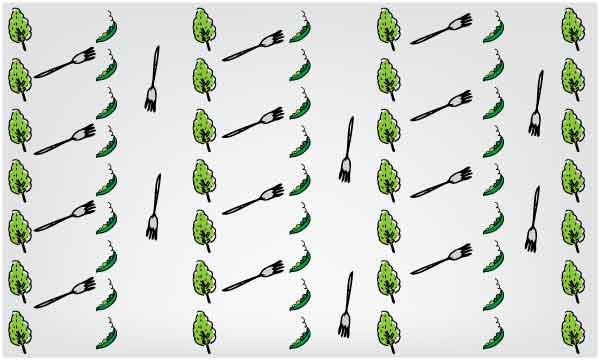 Combination of chilli, fork and green leaf arrange in specific pattern on abstract white background