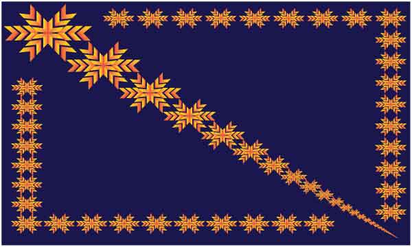 Eight edge flower artwork in small and big different size make a frame and diagonal on dark blue background