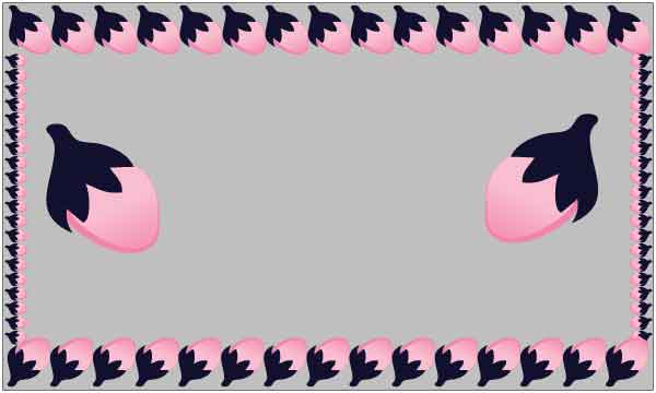 Big and small different size of pink and black various fruit decorate in rectangle shape on abstract grey background