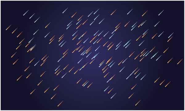 Rain of gold and silver droplet display in diagonal shape on dark sky background