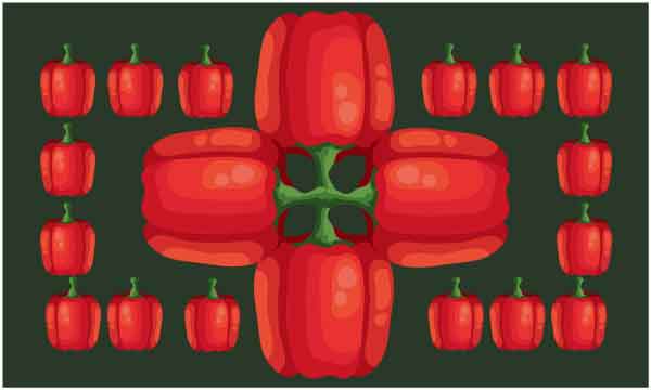 Small and big red capsicum make a perfect artwork in rectangle shape on black background