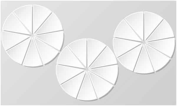 Several cut in three circular white paper in same size and shape make perfect circle share of artwork