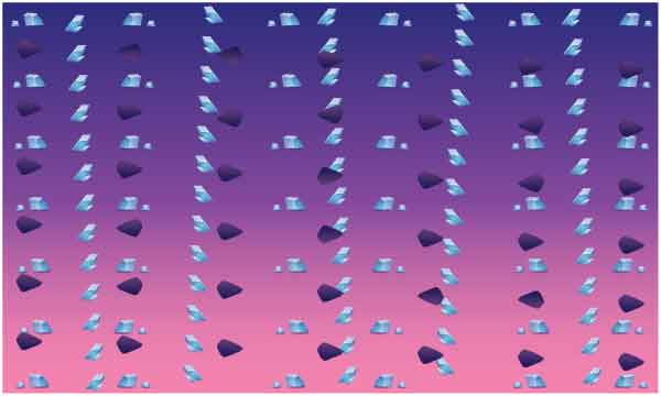 different shape and size stone and glass object scattered on dark and light purple background