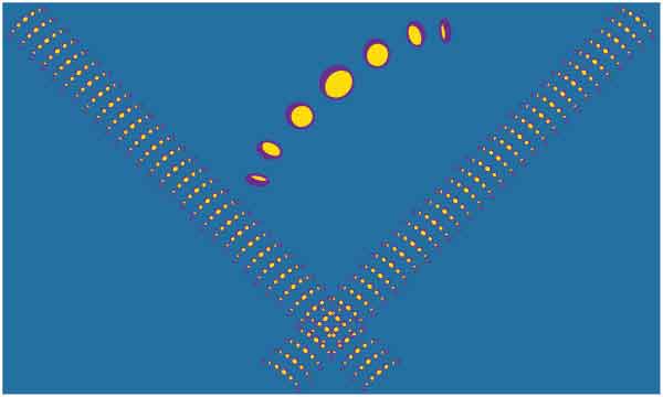 Various size yellow and purple circle make light effect on blue background