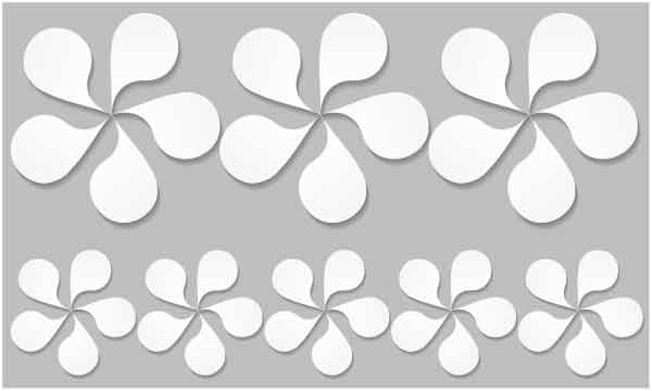 Small and big white flower display in straight line on abstract grey background