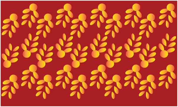 Yellow leaf shape carpet art on dark red background